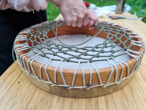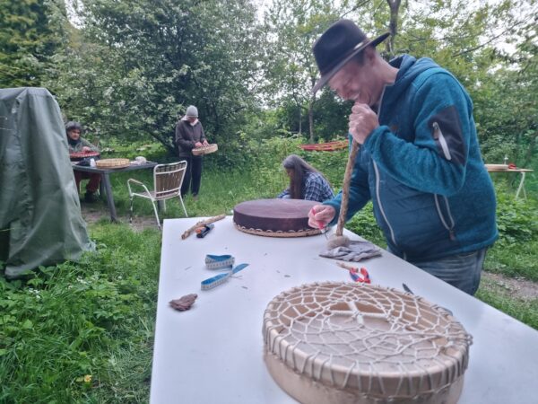 Der Bau deiner eignen Schamanentrommel ist ein besonderer Prozess. Dein Kraftgegenstand für schamanisches Reisen entsteht. In Verbindung mit dem Tier und der Pflanze entsteht deine persönliche Rahmentrommel. Der Klang kann variieren von tief und kraftvoll, zu sanft mit Obertönen singend, das zeigt sich wenn sie getrocknet ist. Gestimmt wird deine Rahmentrommel durch Wärmequellen.